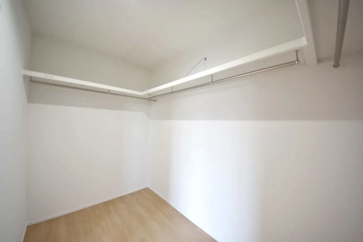 広々としたウォークインクローゼットは、衣類や小物をすっきり収納できる使い勝手の良い空間。毎日の身支度もスムーズに整います。