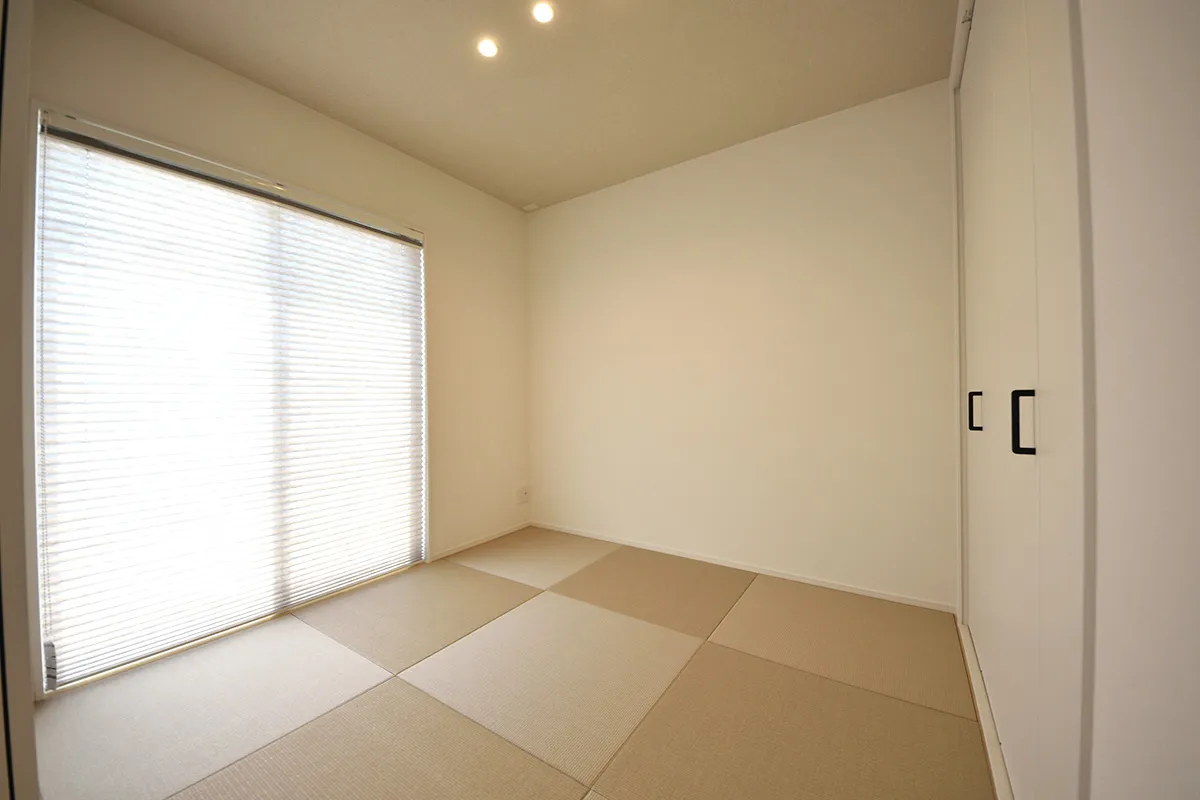 リビング続きの畳ルームは、くつろぎや客間など多目的に使える便利な空間。ゆったりとした時間を過ごしたり、ひと息つく場としても最適です。