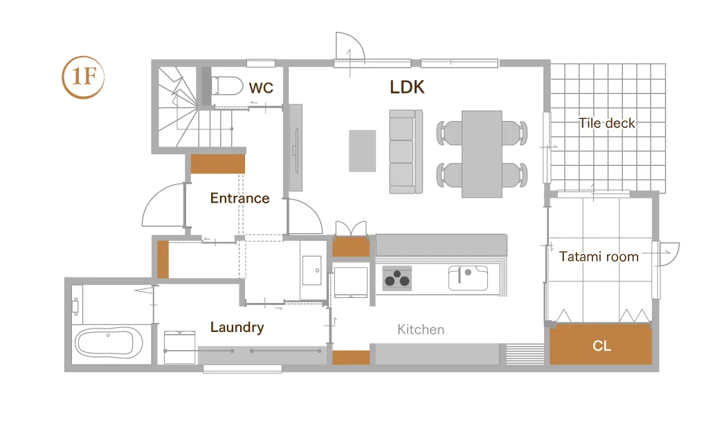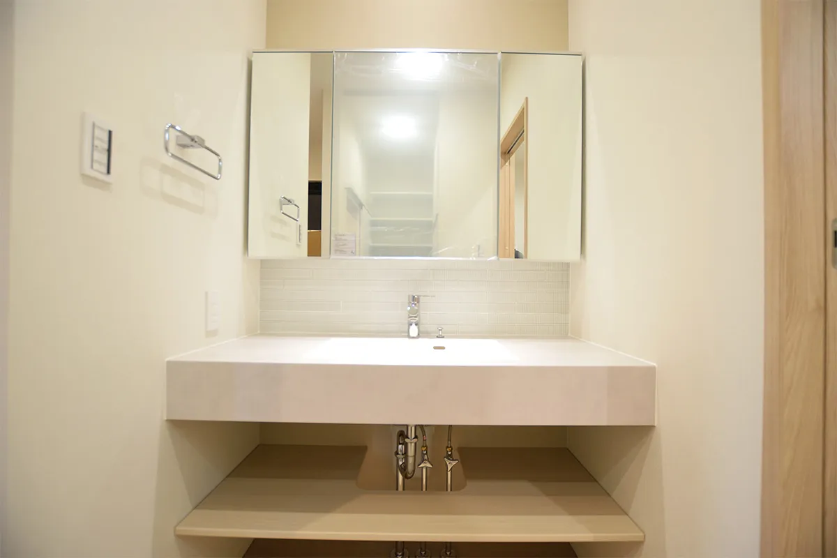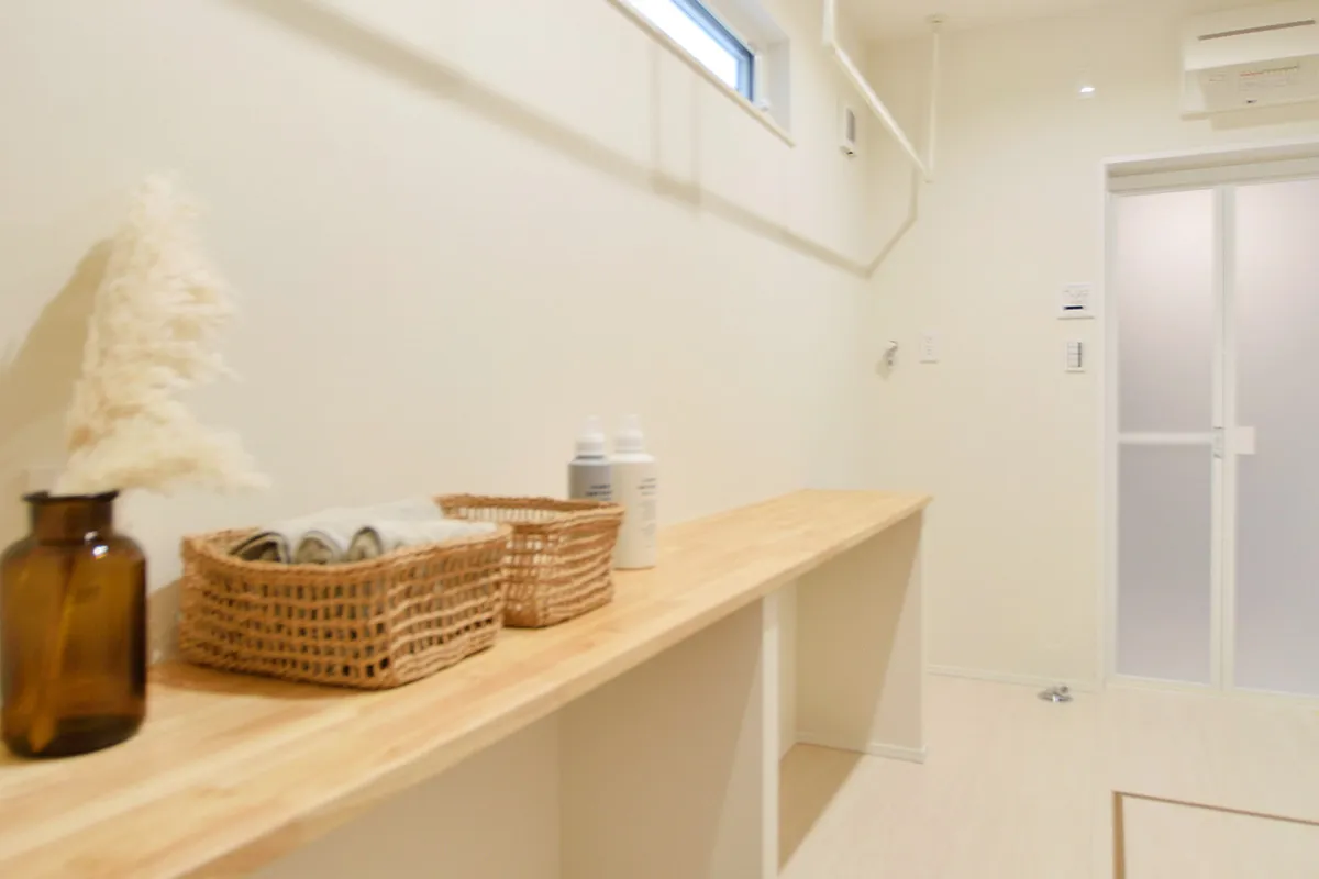 隣接するランドリールームでは、洗濯から片付けまで家事がスムーズに。効率の良い動線で日々の負担を減らし、時間にも気持ちにもゆとりが生まれます。